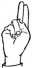 На ћирилици написано МИЊА СЕКУЛОВ састоји се из 11 слова [?]. Исписано ћириличном једноручном азбуком за глувонеме: